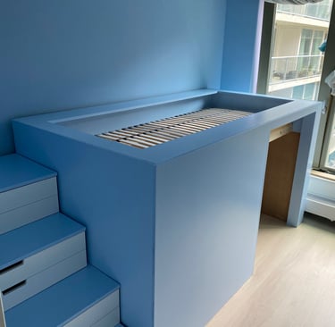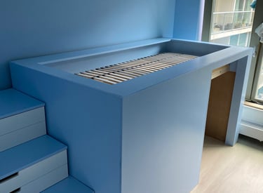 Onze vriend Jonas heeft na dit schilderij een prachtig bed gekregen, hij (4 jaar) was er heel blij mee.